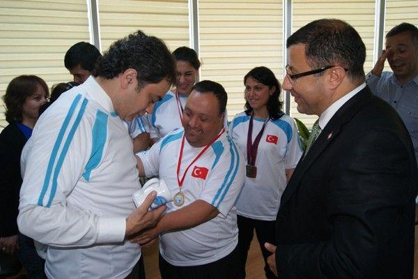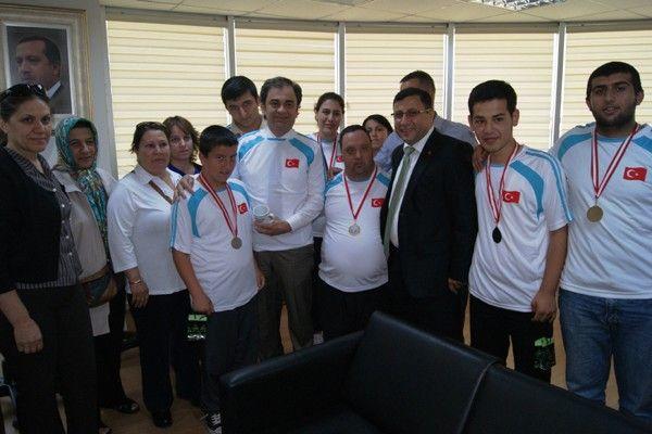Silivri Özel Sporcular Spor Kulübü öğrencileri, ulaşım sponsorluğu ve sosyal hizmetleri nedeniyle İETT Genel Müdürü Dr.Hayri Baraçlı'ya bir buket çiçek, kupa bardak ve kulübün tişörtünü hediye ederek teşekkür etti.