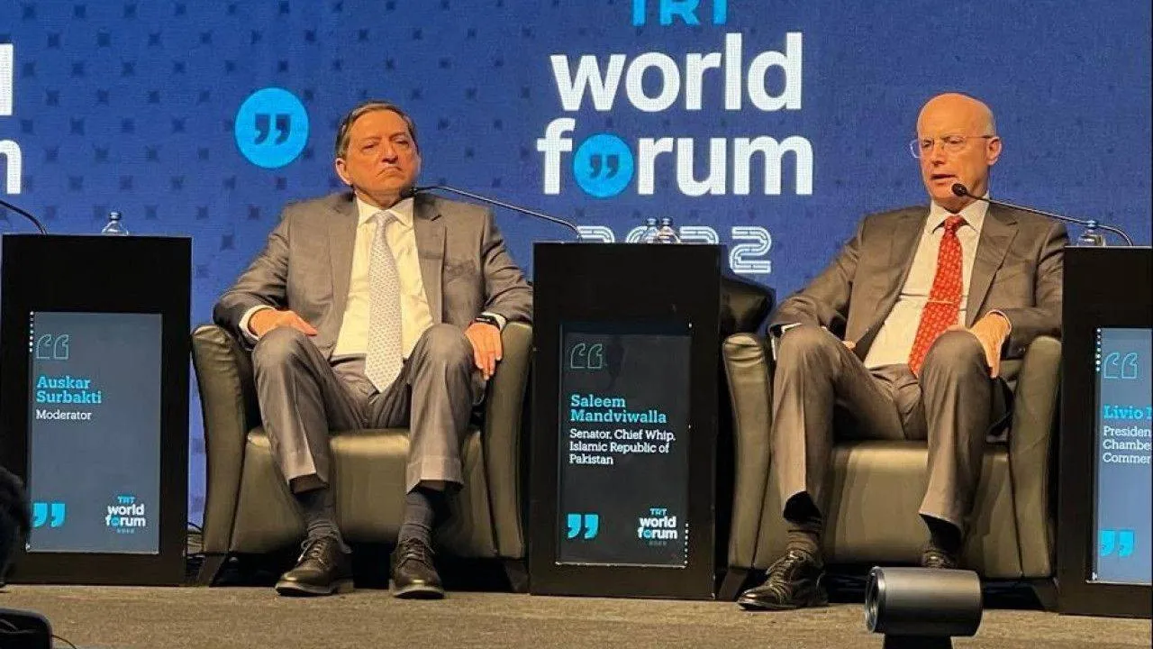 Pakistanlı Senatör Saleem Mandviwalla, İstanbul’da düzenlenen TRT World Forum’a katıldı. “Durgunluk ve Stagflasyon Arasında: Dünya Ekonomisi Dönüm Noktasında” başlıklı panelde konuşan Senatör, pandemi sonrası küresel ekonominin dinamiklerini detaylandırdı. Salgının zaten zayıf olan ekonomiler üzerinde baskıya neden olduğunu, dolayısıyla ekonomik ve sosyal uçurumları büyüttüğünü belirtti. Bununla birlikte, dijital küreselleşme, ekonominin ve diğer sektörlerin canlanması için çok yönlü ve çok boyutlu dijital çözümler sunduğunu belirtti.