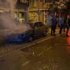 Bursa'nın İnegöl ilçesinde gece saatlerinde park hâlindeki otomobil alev alev yandı.