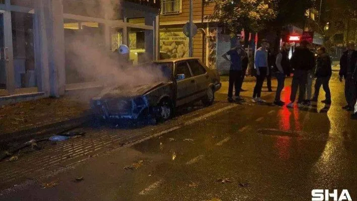 Bursa’nın İnegöl ilçesinde gece saatlerinde park hâlindeki otomobil alev alev yandı.