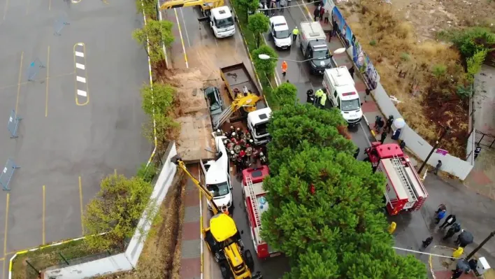 Pendik'te çöken istinat duvarı nedeniyle servis aracına sıkışan kişi kurtarıldı
