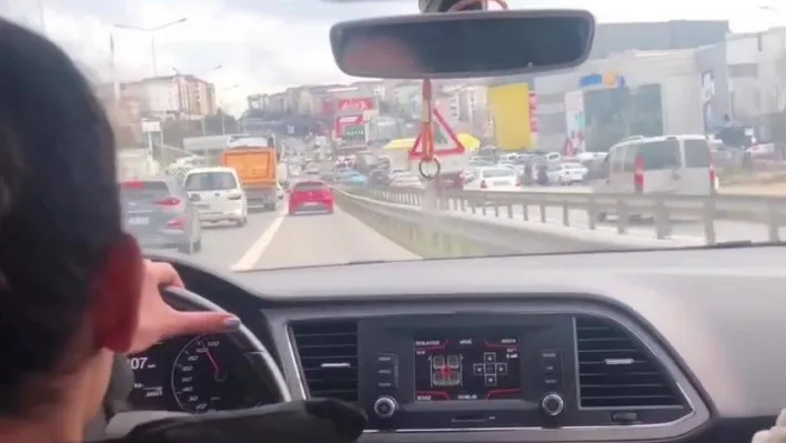 Pendik’te D-100 karayolu Tuzla istikametinde ilerleyen kadın sürücü, yürekleri ağza getirdi. D-100 karayolunda trafiğin yoğun olduğu saatte makas atarak aracıyla hızla ilerleyen sürücü, hem kendi hem de diğer sürücülerin canını tehlikeye attı. Genç sürücünün yanında oturan annesi ise o anlarda panik yaşadı. Sürücü,