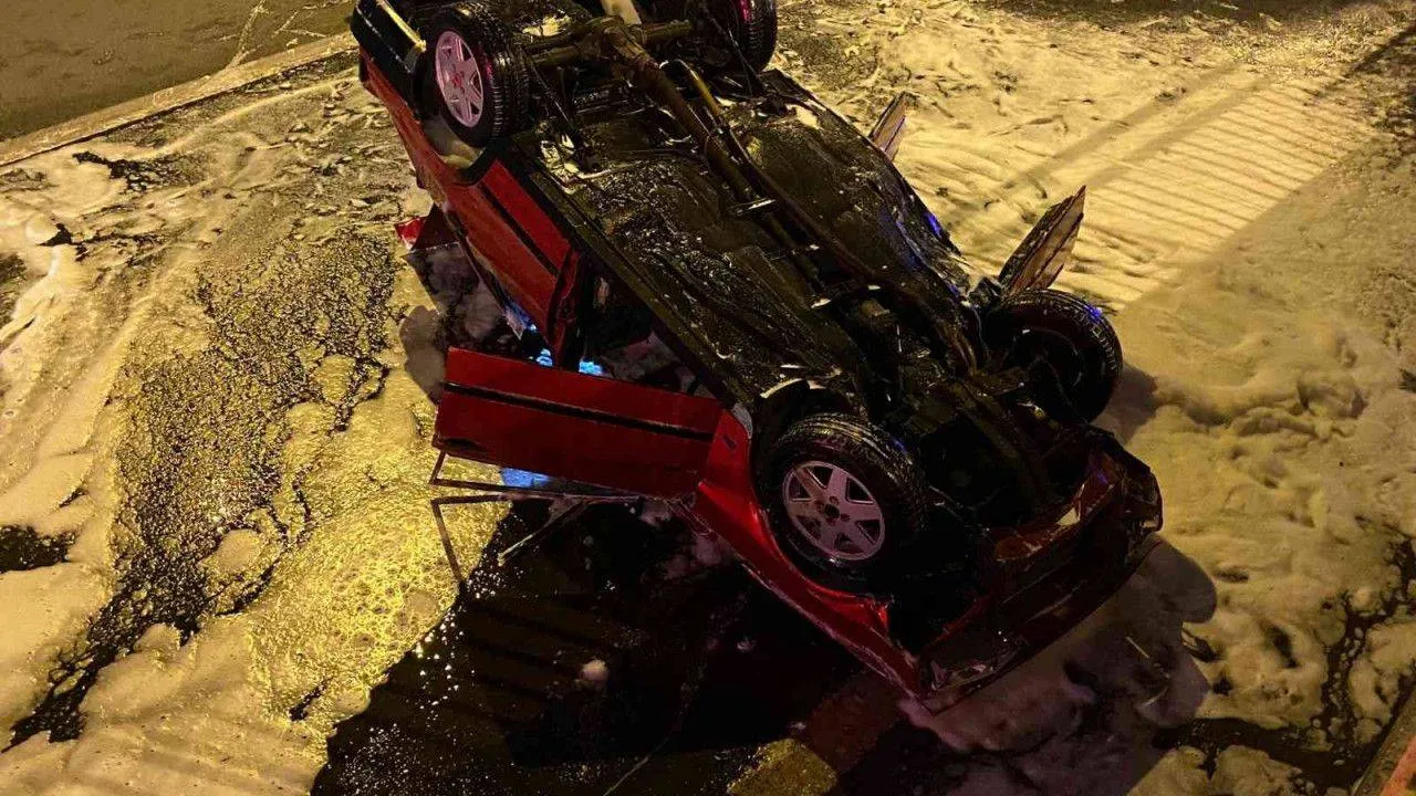 Pendik'te kontrolden çıkıp takla atan otomobil yandı: 4 yaralı