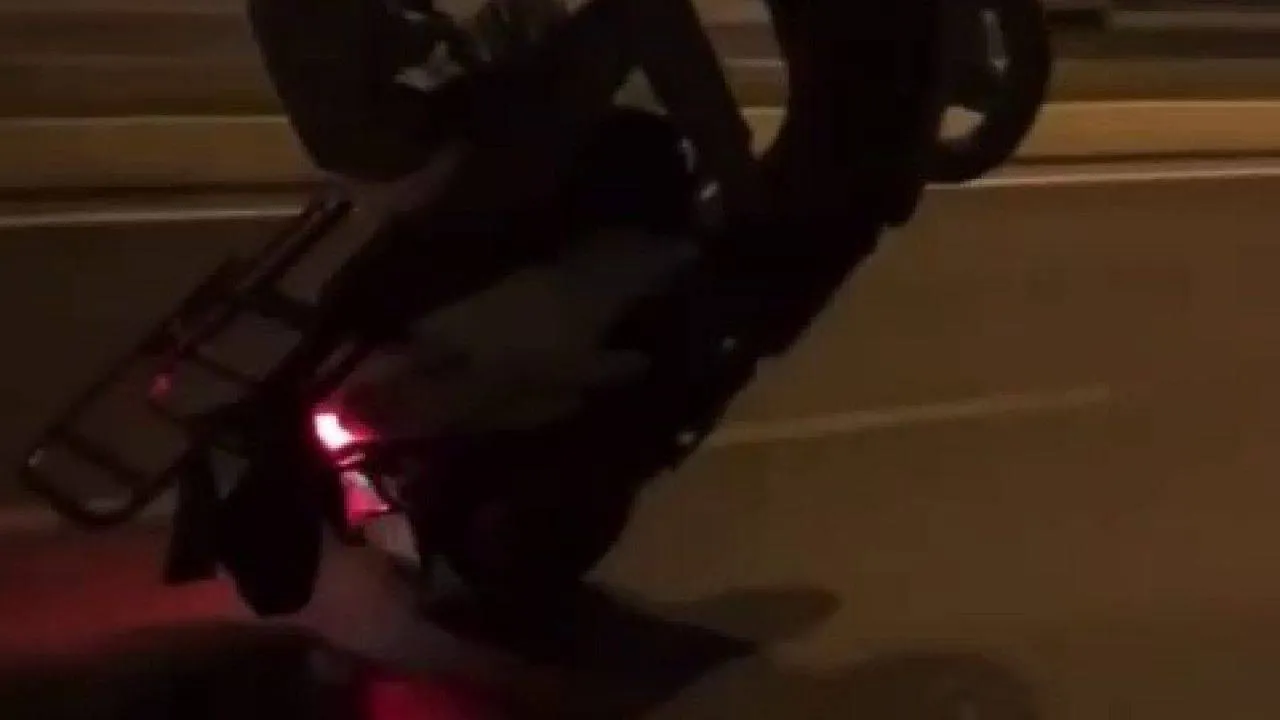 Pendik’te motosikletiyle trafiği tehlikeye düşürecek hareketler yapan motosiklet sürücüsü o anları sosyal medya hesabından paylaştı. Motosikletiyle tek teker üzerinde seyreden sürücü, hem kendi canını hem de trafiği tehlikeye düşürdü. Motosikletiyle tünelde ve caddede metrelerce tek teker üzerinde giden sürücünün tehlikeli hareketleri görenleri şaşkına çevirdi.