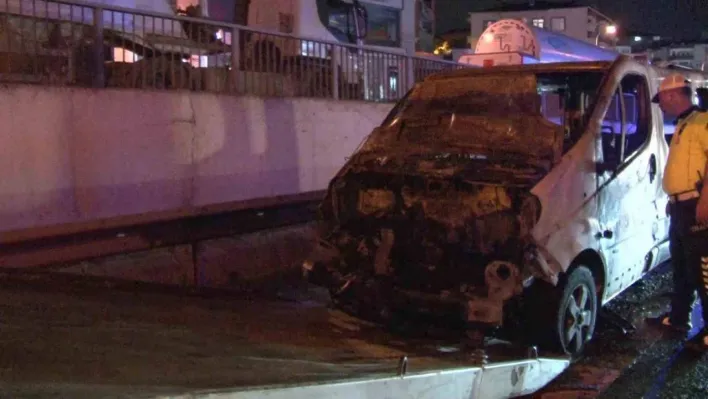 Pendik'te seyir halindeki minibüs alev alev yandı