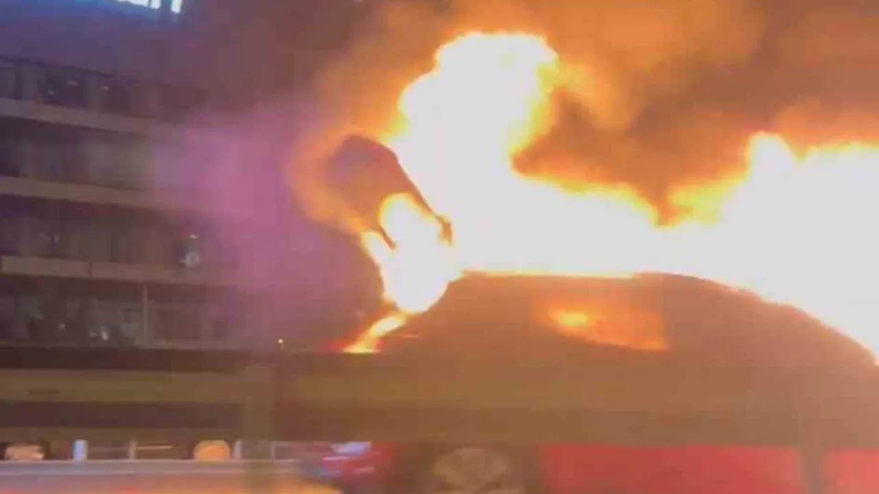 Durumu fark eden sürücü otomobili durdurarak içindeki yolcularla birlikte araçtan çıktılar. Alevlerin bütün otomobili bir anda sarmasıyla otomobil alev topuna döndü. İhbar üzerine olay yerine polis sağlık ve itfaiye ekibi sevk edildi. Olayda can kaybı veya yaralanma yaşanmazken itfaiye ekipleri tarafından söndürülen otomobil kullanılamaz hale geldi. Olayla ilgili inceleme başlatıldı. Yangın cep telefonu kamerası ile kaydedildi.