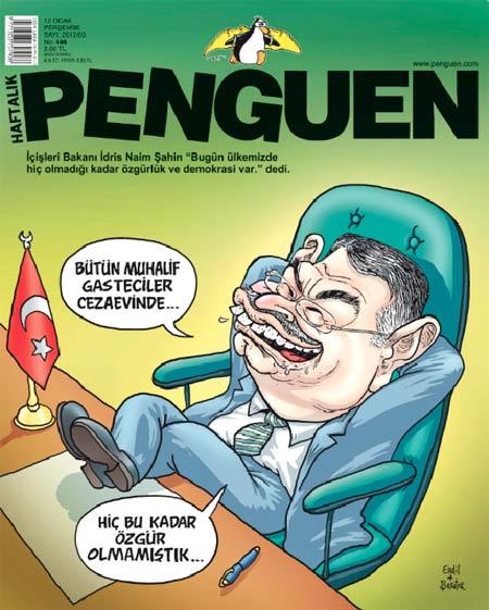 Çok sayıda gazetecinin tutuklu olması Penguen'in kapağına çıktı. İçişleri Bakanı'nı konu edinen Penguen, haftanın karikatürüne imza attı.