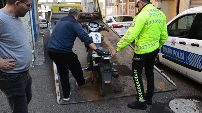 Plakasız motosikleti yürütürken yakalanan şahsın 4 ayrı aranması çıktı