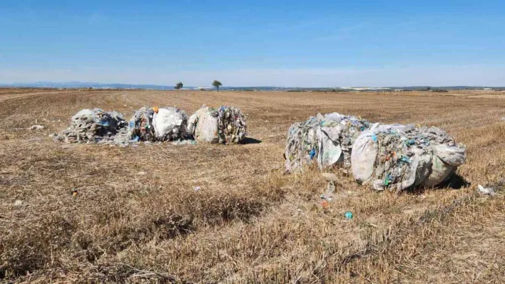 Tekirdağ'ın Saray ilçesinde bir tarlaya onlarca kiloluk plastik atık bırakıldı.