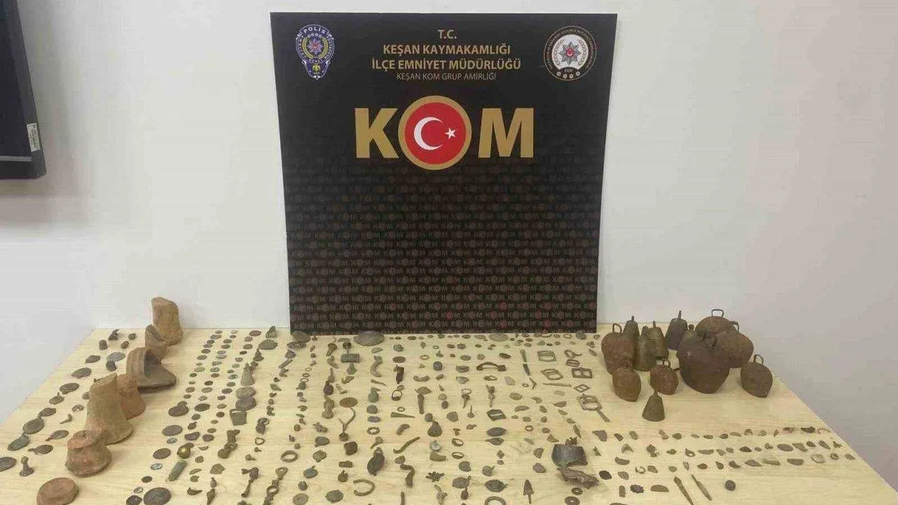 Edinilen bilgiye göre, Keşan İlçe Emniyet Müdürlüğü Kaçakçılık ve Organize Suçlarla Mücadele Grup Amirliği ekipleri Aşağı Zaferiye Mahallesi’nde bir adrese baskın düzenledi. H.G.G. isimli şahsın evinde yapılan aramalarda 400 parça tarihi eser niteliğinde obje ele geçirildi. Gözaltına alınan şahıs hakkında soruşturma başlatıldı.