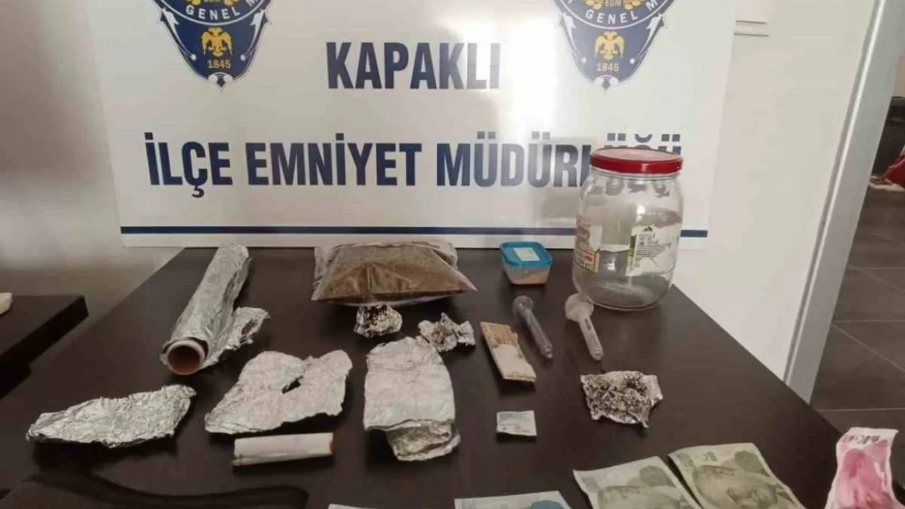 Kapaklı İlçe Emniyet Müdürlüğü Asayiş Büro Amirliği ekipleri Atatürk Mahallesi’nde bulunun bir eve operasyon gerçekleştirdi. Operasyonda, cam kavanoz içerisinde 84 gram bonzai, 22 gram eroin, satışa hazır fişeklenmiş şekilde uyuşturucu ve uyarıcı madde ile uyuşturucu kullanımında kullanılan malzeme ele geçirdi. Ayrıca uyuşturucu ticaretinden elde bir miktar banknotta bulundu.