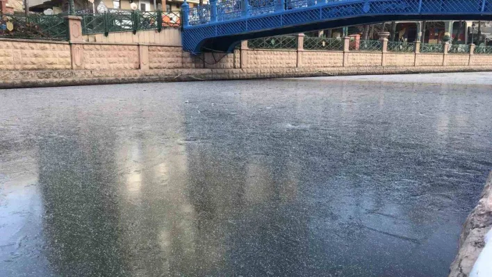 Eskişehir'de etkili olan soğuk hava, porsuk çayının yüzeyini yeniden dondurdu.