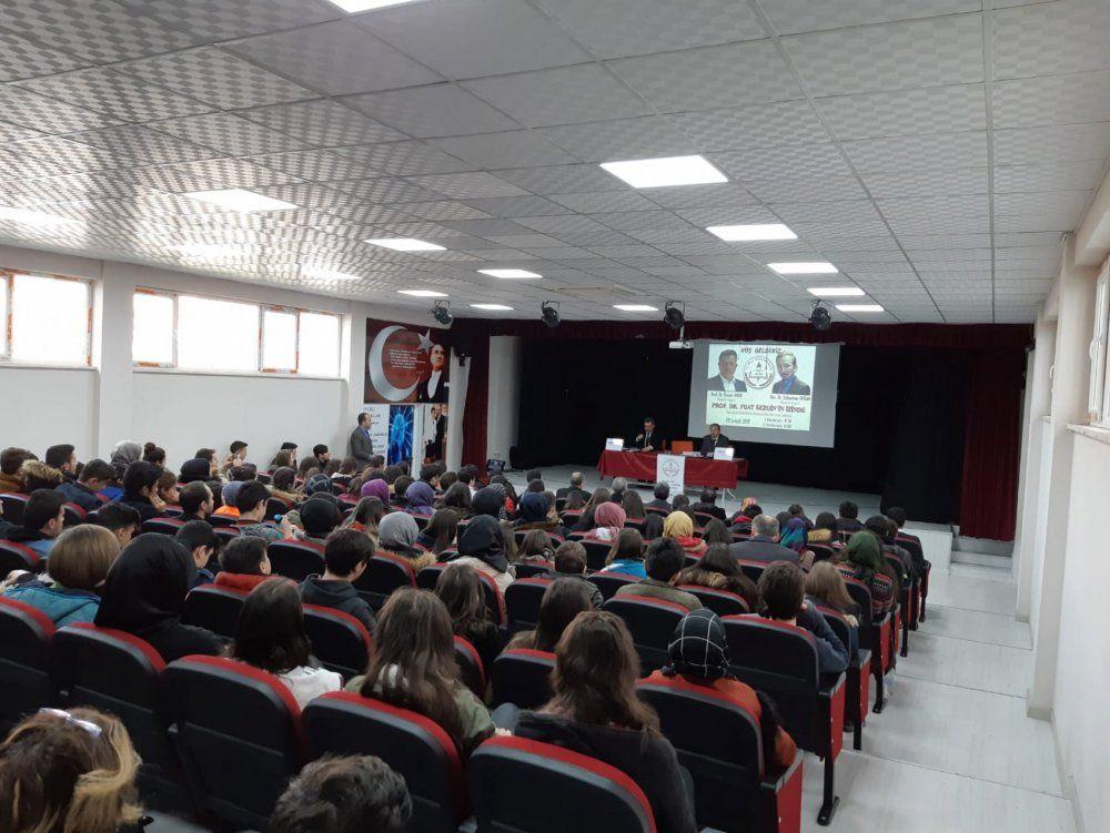Prof. Dr. Sabahattin Zaim Üniversitesi Öğretim Üyesi Prof. Dr. Özcan Hıdır ve Yıldız Teknik Üniversitesi Öğretim Üyesi Doç. Dr. Süleyman Doğan tarafından verilen Prof. Dr. Fuat Sezgin konulu konferans; 2 aşamada gerçekleştirildi. 10.30´da ortaöğretim öğrencilerine hitap eden uzmanlar saat 14.00´teki oturumda ise eğitim kurumu müdürlerine ve öğretmenlere konferanslarını sundu.