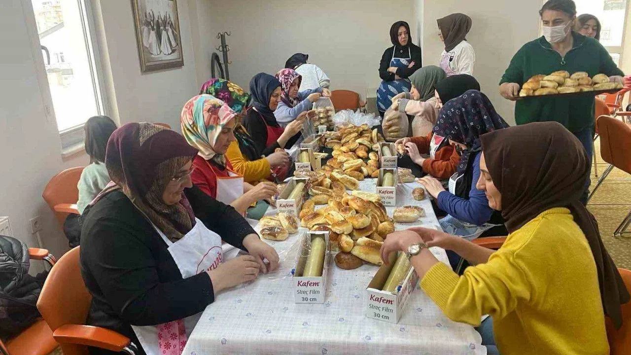 Pursaklar Belediyesine bağlı Hanım Evlerinde eğitim gören kursiyerler, deprem bölgelerinden ilçeye gelen afetzedeler için hamur işi pişirmeye devam ediyor.