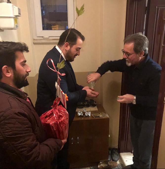 AK Parti Silivri İlçe Gençlik Kolları Başkanı Şafak Karabina ve yönetim kurulu üyeleri 24 Kasım Öğretmenler Günü dolayısı ile Silivri'de yaşayan emekli öğretmenleri ziyaret ederek çınar fidanı hediye etti.