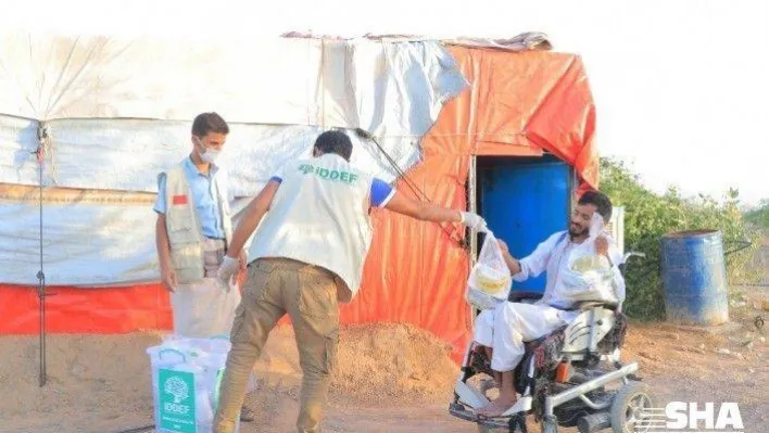 Açıklamaya göre Yemen’de en temel ihtiyaçlardan bile mahrum yaşayan mülteci ailelerle iftar yemeği paylaşılırken, savaş sebebiyle engelli kalan engelli, yetim ve mazlum aileler için iftar yemekleri ev ev teslim ediliyor.