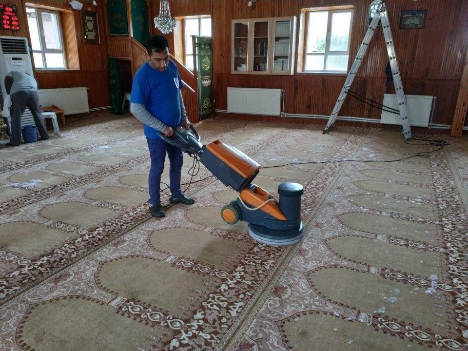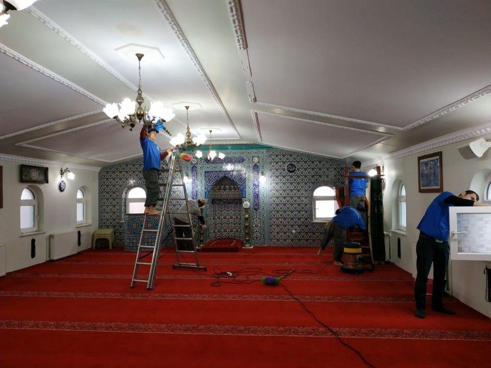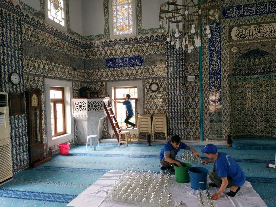 Avlu temizliği, cam ve zemin temizliği de yapılan çalışmalar kapsamında ilçe genelindeki toplam 74 cami ve tüm mescitler ibadete hazır hale getiriliyor.