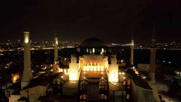 İstanbul'da vatandaşlar, üç ayların başlangıcını müjdeleyen Regaip Kandili nedeniyle Ayasofya Camii'ne akın etti. Ayasofya Camii'nde yaşanan yoğunluk havadan dron ile görüntülendi.