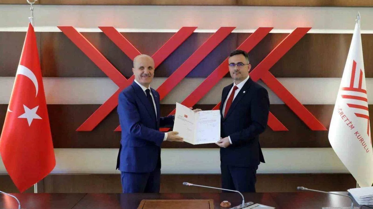 23 Aralık 2022 tarihli Resmi Gazete’de Cumhurbaşkanı Recep Tayyip Erdoğan tarafından Bursa Teknik Üniversitesi (BTÜ) Rektörü olarak atanan ve 26 Aralık 2022 tarihinde görevi devralan Prof. Dr. Naci Çağlar, 6 Şubat depremleri nedeniyle ertelenen törende mazbatasını YÖK Başkanı Prof. Dr. Erol Özvar’dan aldı.