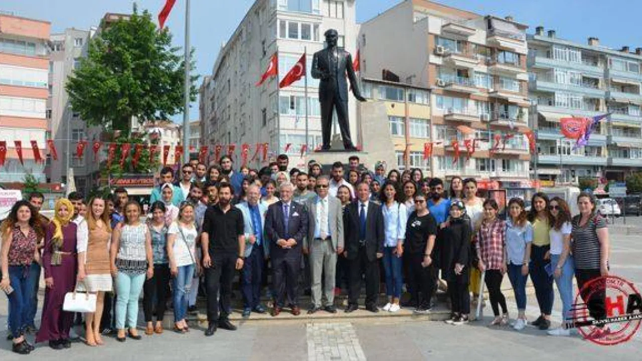 Heyetin sergi ziyareti, Atatürk Anıtı önünde çektirilen toplu hatıra fotoğrafı ile sona erdi.