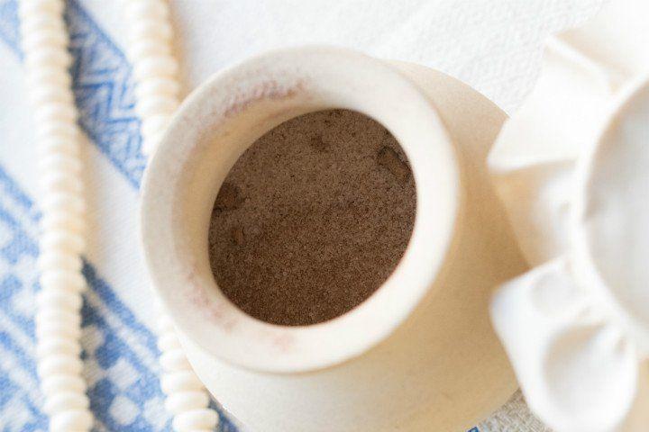 Kabuklar tamamen yanıp kül olduğunda, ortaya çıkan bu külleri temiz ayrı bir kaba alın ve üzerine karışım kremsi bir kıvama gelecek kadar su ekleyin. Suyu azar azar ekleyin ki gerekli kıvamı aldığında su eklemeyi durdurun.