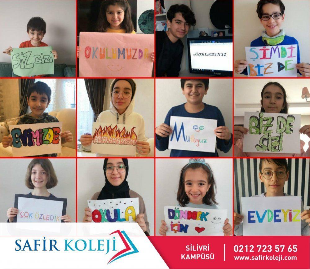 Safirli öğrenciler evlerinde kâğıda yazarak çektikleri fotoğraflarla “Siz bizi okulumuzda ağırladınız, şimdi biz de sizi evimizde ağırlamaktan mutluyuz. Biz de sizi çok özledik, okula dönmek için evdeyiz.” mesajını öğretmenleriyle paylaştı.