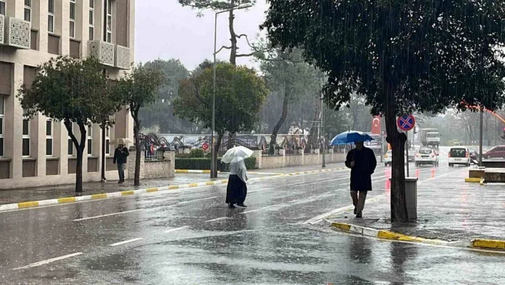 Balıkesir'de bugün sabah saatlerinden itibaren etkili olmaya başlayan yağmur öğle saatlerinde sağanak halini aldı.