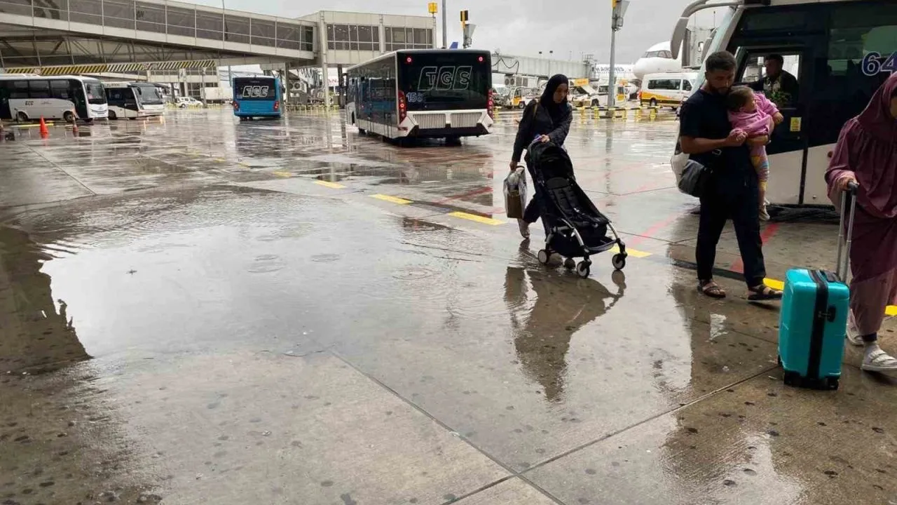 İstanbul'da sabah saatlerinden itibaren sağanak yağış etkili oldu. Yağış nedeniyle Sabiha Gökçen Havalimanı'nda oluşan su birikintileri özellikle yolculara zor anlar yaşattı.