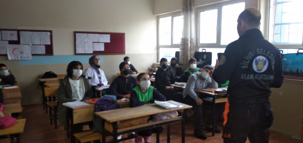 Silivri'de eğitim gören öğrencilere yönelik başlattığı afet bilinci ve farkındalık eğitimlerine devam eden Silivri Arama Kurtarma ekibi, şu ana kadar 38 okulda yaklaşık 15.000 öğrenciye afetler öncesi, sırası ve sonrasında yapılması gereken doğru davranış şekilleriyle ilgili bilgiler verdi.