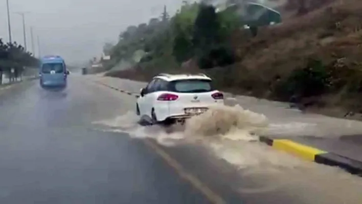 Sakarya'da aniden bastıran şiddetli yağış kısa sürede birçok caddeyi sular altında bıraktı.