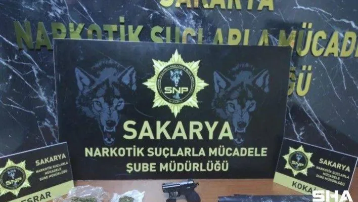 Sakarya’da polis ekipleri uyuşturucuya geçit vermiyor. Sakarya Emniyet Müdürlüğü Narkotik Suçlarla Mücadele Şube Müdürlüğü ekiplerince sokak satıcılarına yönelik Serdivan ilçesinde operasyon düzenlendi. İstanbul’dan getirdikleri uyuşturucu maddeleri Sakarya’da satacakları tespit edilen 2 şüpheli narkotik ekiplerince takibe alındı. Şüphelilerin aracında yapılan aramalarda 1 ruhsatsız tabanca ve 7 adet çapında fişek ele geçirilirken, ikametlerinde ise; 13,43 gram esrar, 5 gram taş kokain ve 89 gram toz kokain ile 1 adet hassas terazi ele geçirildi.
