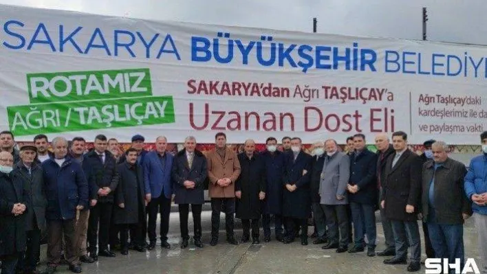 Kardeş şehir projesi kapsamında Sakarya Büyükşehir Belediyesi öncülüğünde hazırlanan 700 koli yardım malzemesi Ağrı'nın Taşlıçay ilçesine dualarla uğurlandı.