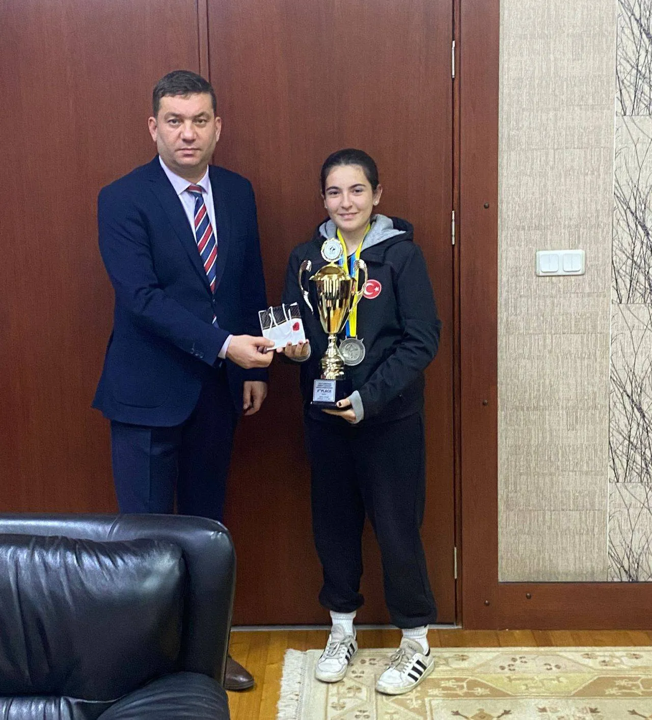 Kaymakam Toğan, şampiyon sporcu ve antrenörü tebrik ederek başarılarının devamını diledi.