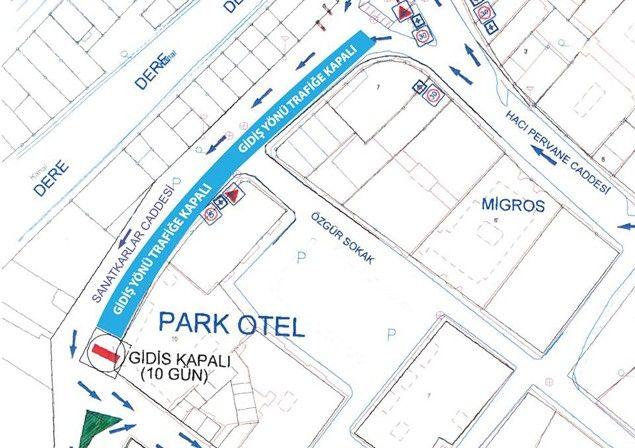 İSKİ'nin devam eden çalışmaları kapsamında Sanatkarlar Caddesi Park Otel önünden Kalender Gıda önüne kadar olan bölüm trafiğe kapatılacak.
