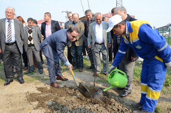 İlçe protokol üyeleri bizzat katıldığı ağaç dikme etkinliğinde, erguvan fidanlarını dikerek can suyu verdiler.