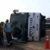 Öte yandan, incelemelerin tamamlanmasının ardından şoförün direksiyon hakimiyetini kaybetmesi sonucunda devrilen yolcu otobüsü, ekipler tarafından çekici yardımıyla olay yerinden kaldırıldı.