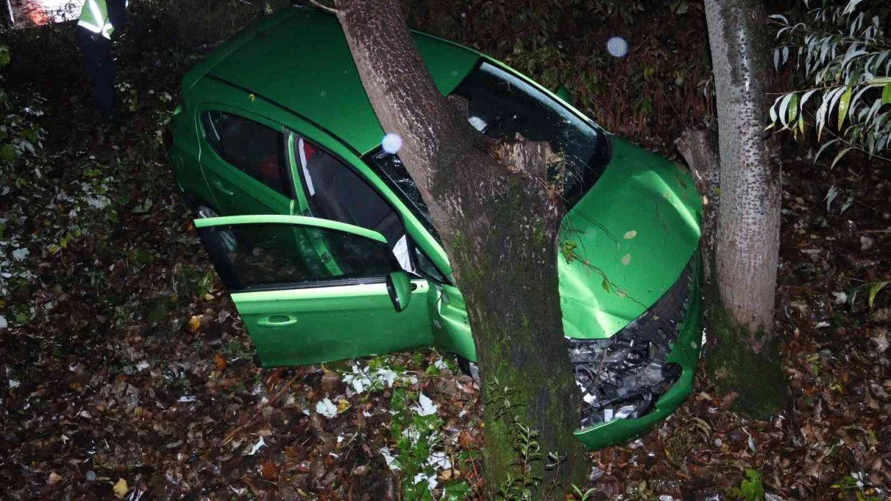 Şarampole yuvarlanan otomobil ağaca çarparak durabildi: 2 yaralı