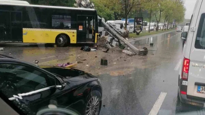 Sarıyer'de yağmur nedeniyle kayganlaşan yolda direksiyon hakimiyeti kaybedilen İETT otobüsü, önce Kent Güvenlik Yönetim Sistemi kameralarının bulunduğu direğe, ardından otomobile çarptı. Otobüsün boş olması nedeniyle faciadan dönülen kazada direk yola devrilirken, trafik yoğunluğu oluştu.