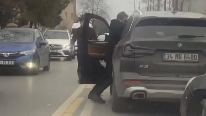 Sarıyer'de yol verme kavgası kamerada: Aracın içinden tekme attı