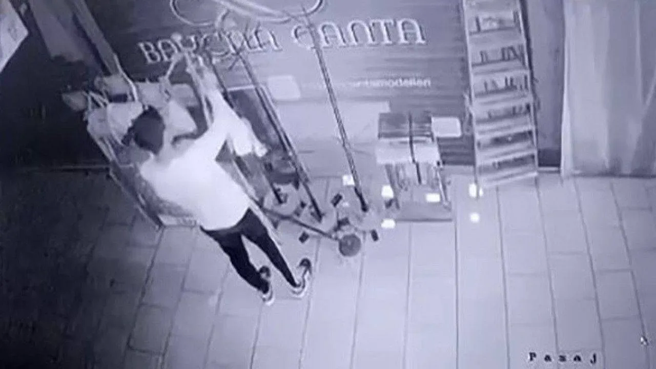 Satışı yapılan askıdaki çantaları böyle çaldılar