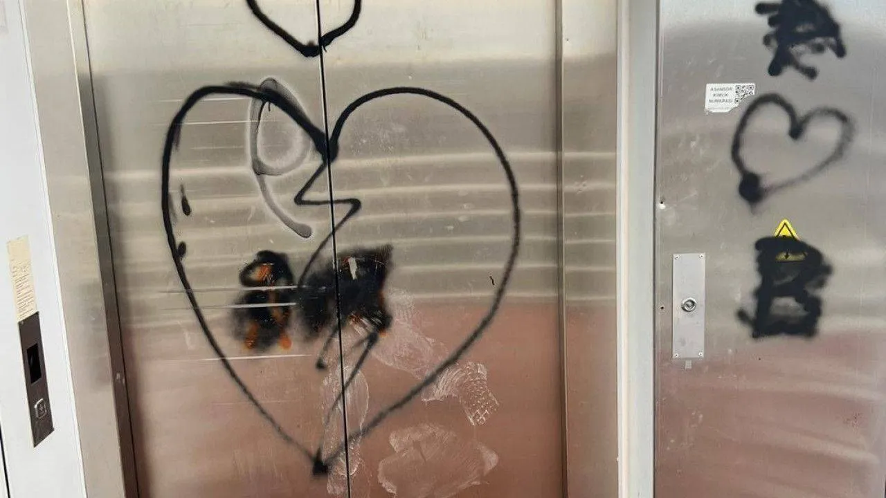 Kocaeli'nin Gebze ilçesinde Şehit Komando Uzman Çavuş Polat Özbek'in adını taşıyan yaya üst geçidinin asansörlerine sprey boyalarla yazılan yazı ve çizimlerle saldırıda bulunuldu.
