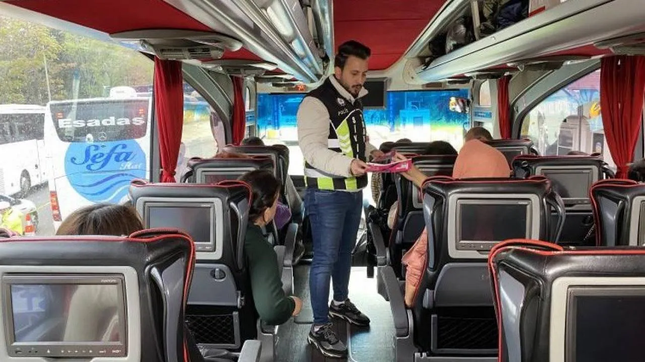 Ticari araçlarda kış lastiği zorunluluğu uygulaması başlarken, İstanbul'da polis ekiplerince şehirlerarası yolcu taşıyan otobüslere yönelik denetim yapıldı.