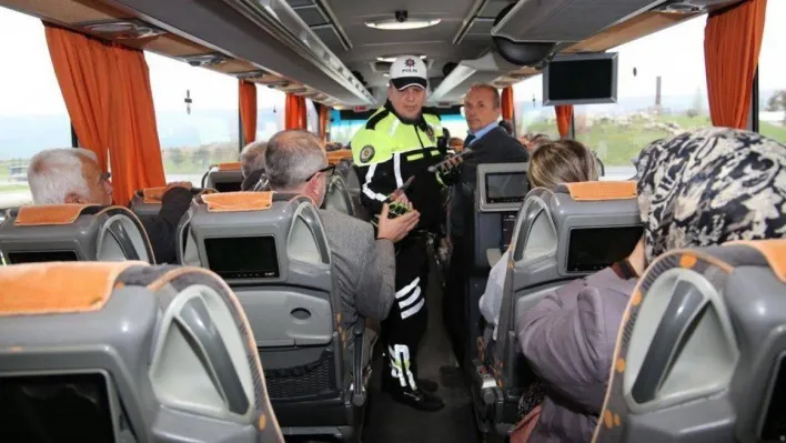 Tekirdağ’da polis ekipleri Ramazan Bayramı sebebiyle yaptıkları trafik denetimlerinin yanı sıra şehirler arası otobüslerde de denetimler yaptı.