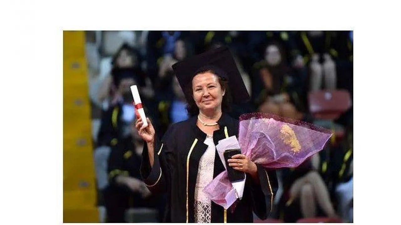 Ayla Çiğa, üniversite tarafından kentteki Servet Tazegül Spor Salonu’nda düzenlenen mezuniyet törenine katılarak temsili diplomasını aldı.