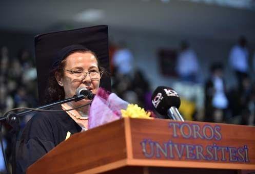 Mezuniyet töreninin açılış konuşmasını yapan Ayla Çiğa, okulunu bitirmenin sevinç ve mutluluğunu yaşadığını söyledi.