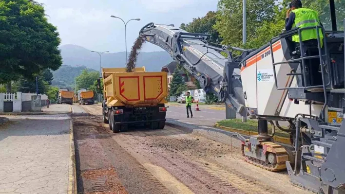 Kocaeli Büyükşehir Belediyesi üst yapı çalışmalarını sürdürürken bozuk yollardan sökülen asfaltı köy yollarında değerlendiriyor.