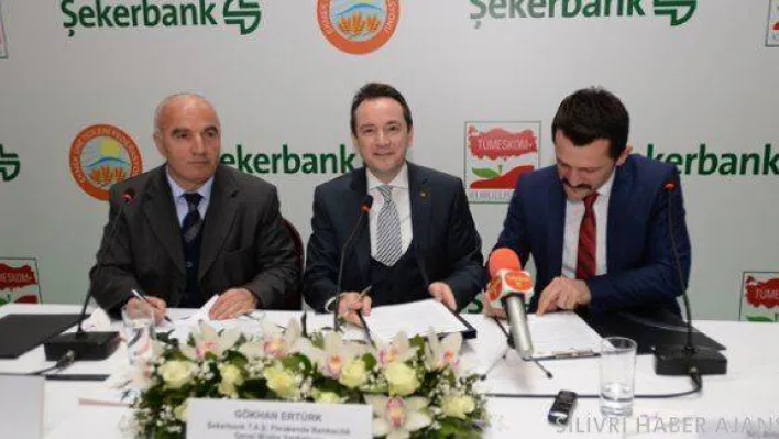 Tüm Bostan Sebze Meyve Komisyoncu ve Tüccarlar Federasyonu’nun (TÜMESKOM) Genel Merkezi’nde düzenlenen törende protokollere, Şekerbank T.A.Ş Perakende Bankacılık Genel Müdür Yardımcısı Gökhan Ertürk ile TÜMESKOM Başkanı Burhan Er ve Ekmek Üreticileri Federasyonu (EKMEK-DER) İstanbul Bölge Başkanı Selahattin Büyük imza attı.