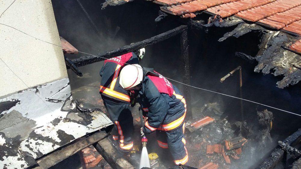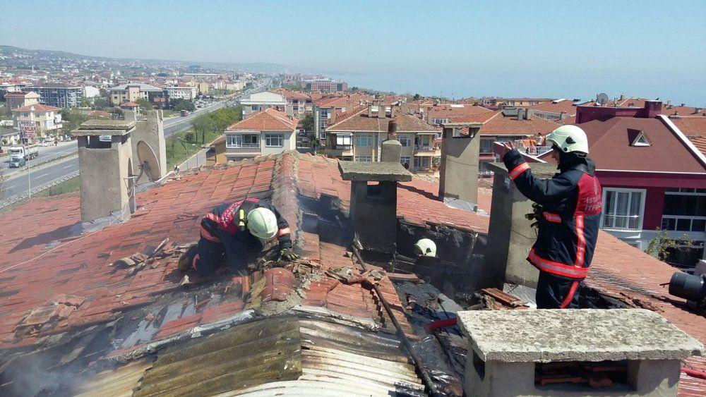 Selimpaşa'da meydana gelen çatı yangını hasara neden oldu.