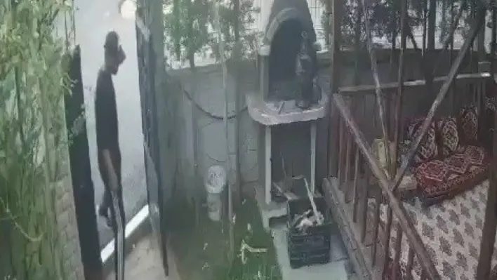 Bursa'da semaver ve kablo çalan şahıs evin kamerasına anbean yansıdı.