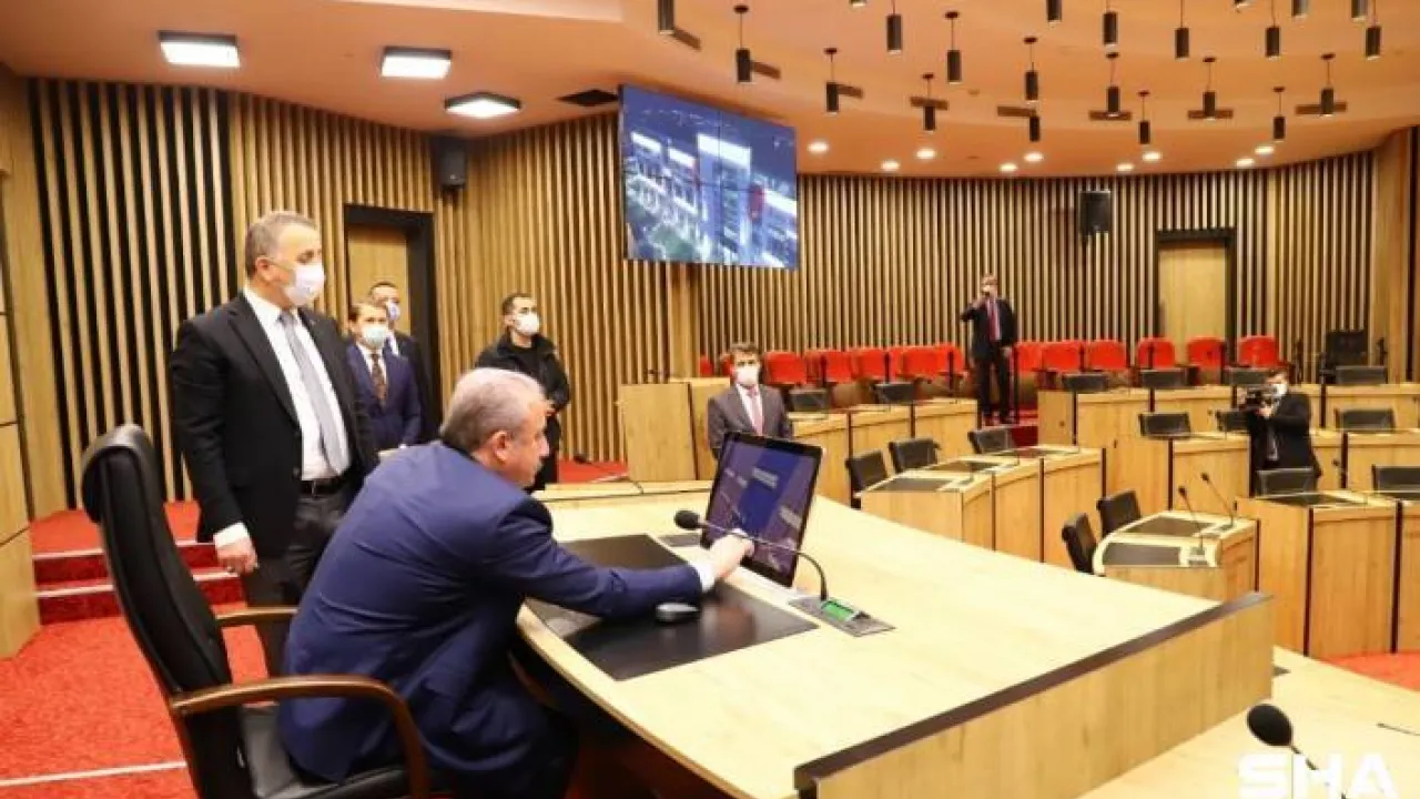 Meclis salonunu çok beğendiŞentop, mimari yapısı ve teknolojik donanımıyla çağın ihtiyaçlarına uygun bir şekilde inşa edilen yeni meclis salonuna da girdi. Meclis başkanı koltuğuna Şentop, Meclis katip üye koltuklarına da Eldivan ve Çağırıcı oturdu. Şentop, salonu çok beğendiğini ifade etti.